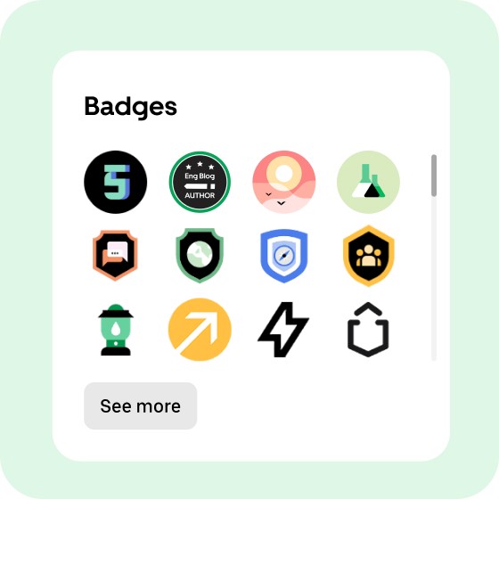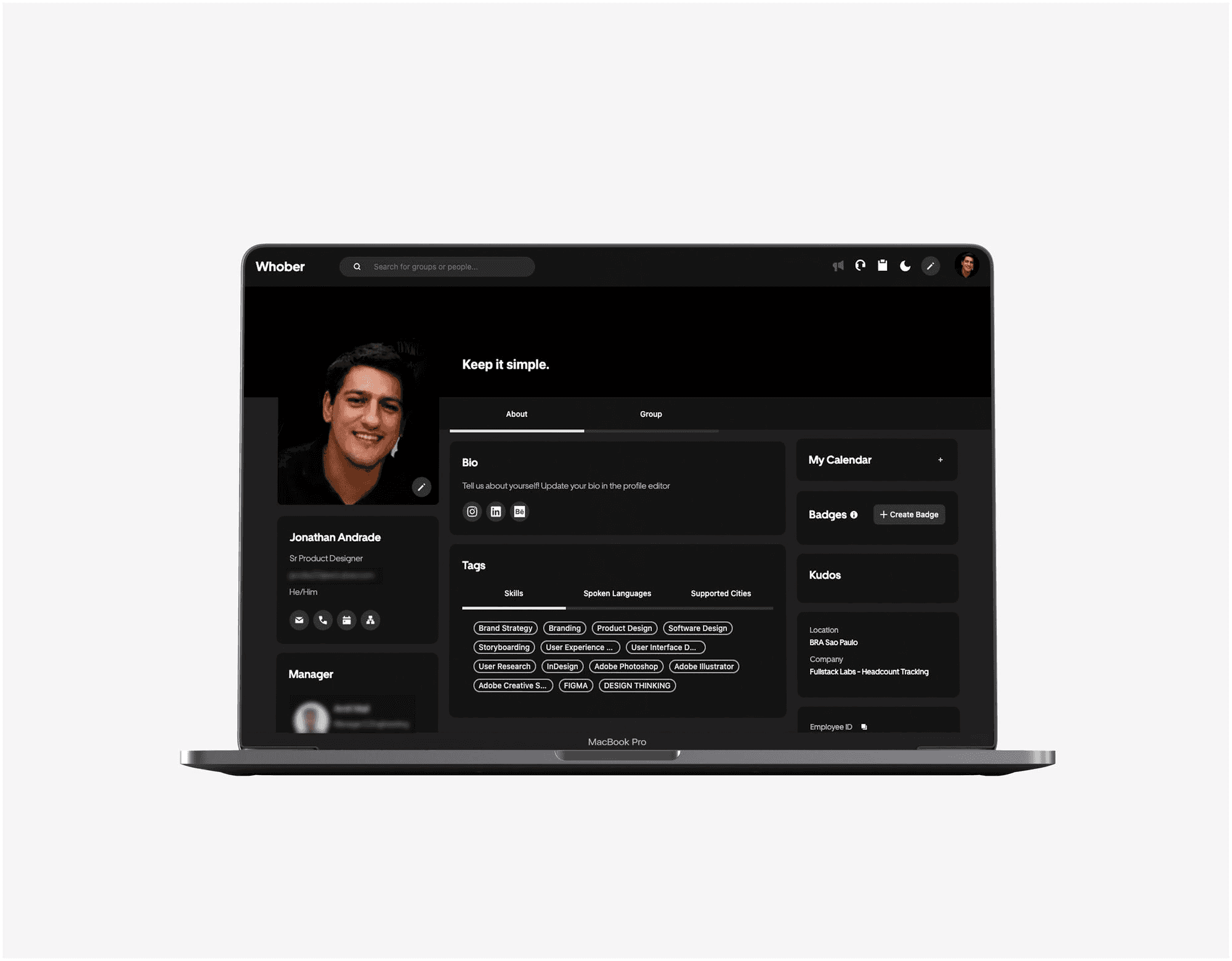 New layout organizes content in a centralized manner. The badges section now features employees' main achievements without relying on engineering.