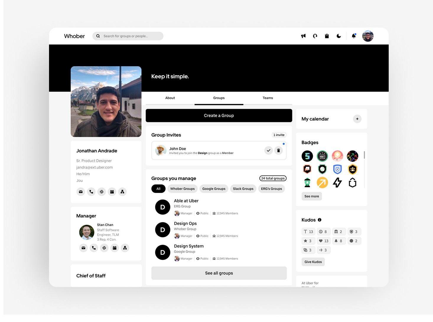 Whober is an internal platform used at Uber to connect employees through professional communities, knowledge sharing, and interest-based groups.
