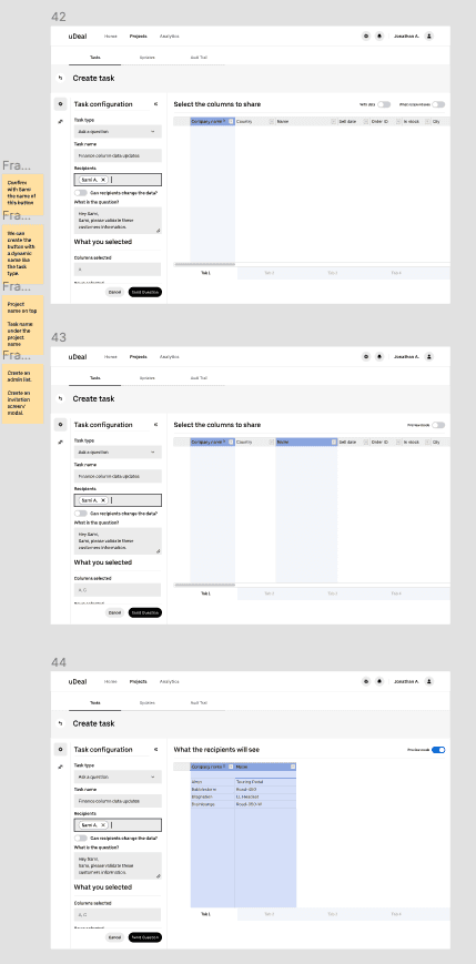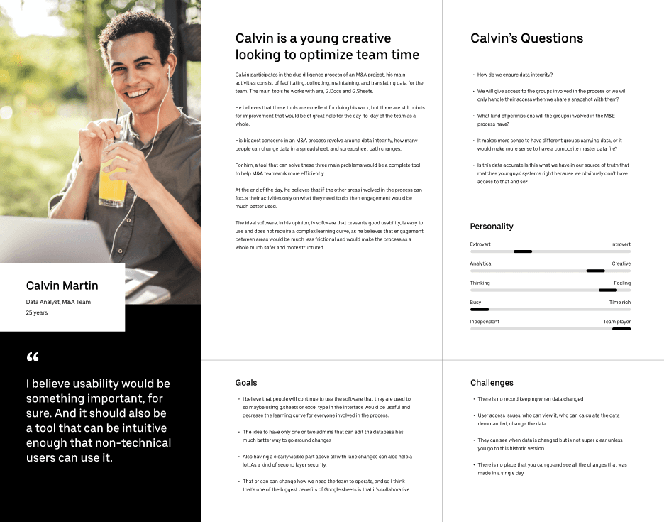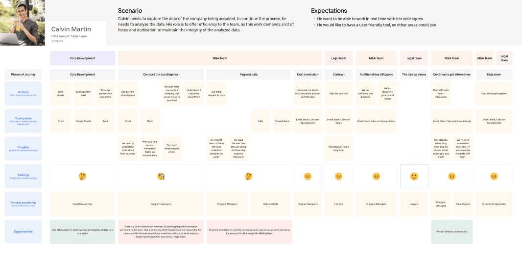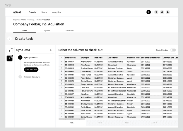 The M&A process is complex and requires significant focus from everyone involved. Since the team’s day-to-day work centers around data analysis and maintaining data integrity, the interface was designed to be minimalistic and free of distracting colors. This approach helps experienced users navigate efficiently, while also making it easier for other departments to use and understand.